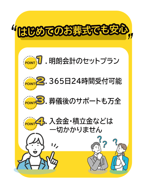 Q なぜこんなに安くできるんですか? 通夜や告別式を省くなど、現代の様々なニーズに合わせて簡略化をすることで低価格化を実現しています。 提携している葬儀社の状況に合わせて葬儀予定を組むなど、会場や人員などの固定費を削減する工夫をしています。